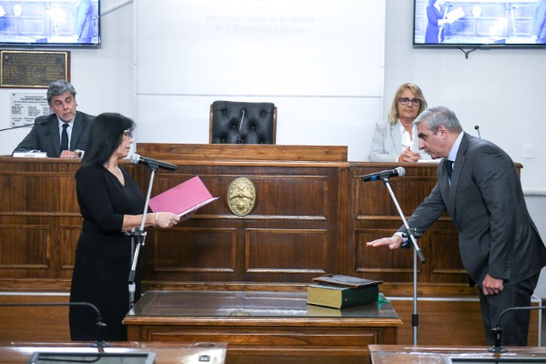 La vicegobernadora y presidente del Senado, Alicia Aluani, tomó juramento a los integrantes del Honorable Jurado de Enjuiciamiento para el bienio 2026/2027, en cumplimiento con el mandato constitucional y de conformidad con el artículo 7° de la Ley N°9283. El acto se desarrolló este miércoles al mediodía en el recinto de la Cámara de Senadores.